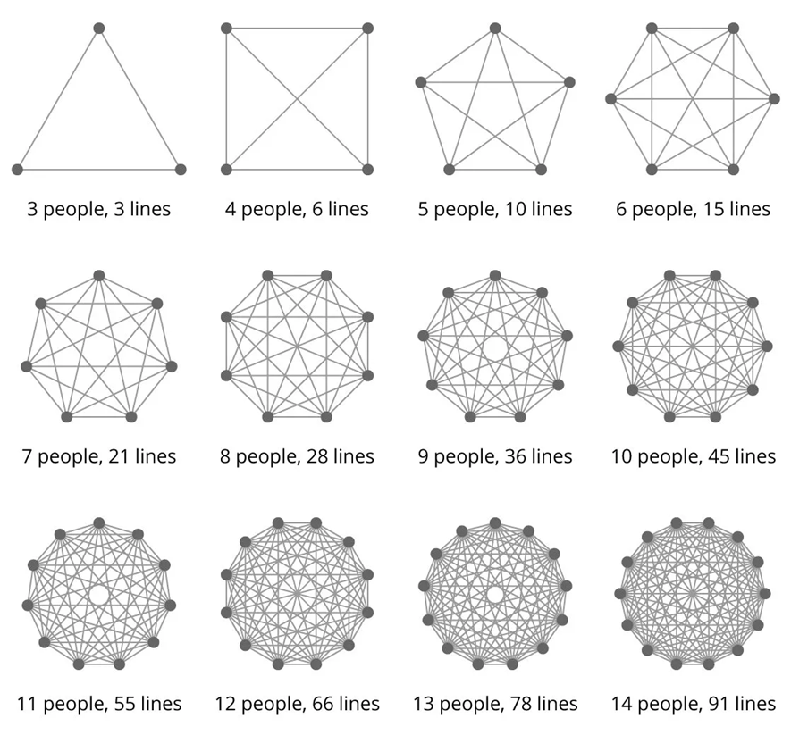 - Mas também → mais canais de comunicação, mais camadas de gestão, mais desalinhamentos.